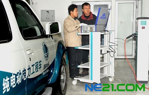 世纪新能源网据新华社消息:12月27日,工程技术人员在实验室内检测光伏微电网对纯电动工程车进行充电的实时工况。近日,江苏省电力公司新能源及智能配网实验室在南京市江宁区建成并完成调试。该实验室可对风能、光能等新能源发电的电能进行智能分配,实现新能源电网与其它电网的协调互动,可满足江苏光伏、风电等新能源电网快速发展的技术服务需求。此外,实验室还配有风光储一体化发电系统、电动汽车充电系统等,可依托实验平台加速研究智能配电网的前沿技术问题。
