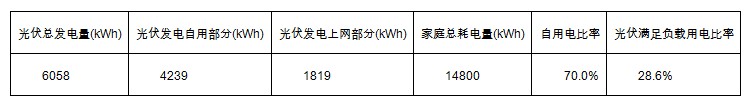 目前北京市对普通用户实行的是阶梯电价。年用电量2880kWh以下为0.4883元每度, 2881kWh至48000kWh之间的电量,执行第二档电价标准,电价比第一档提高0.05元/千瓦时,全年超过4800千瓦时的电量,执行第三档电价标准,比第一档提高0.3元/千瓦时。从此用户发电量和用电量情况,可以看出安装光伏系统后,不但可以将从电网的取电量从14800度电降到10561度电,更削减了第三档的用电量,将平均电价从0.7元降到0.66元,从而节约电费3341元。