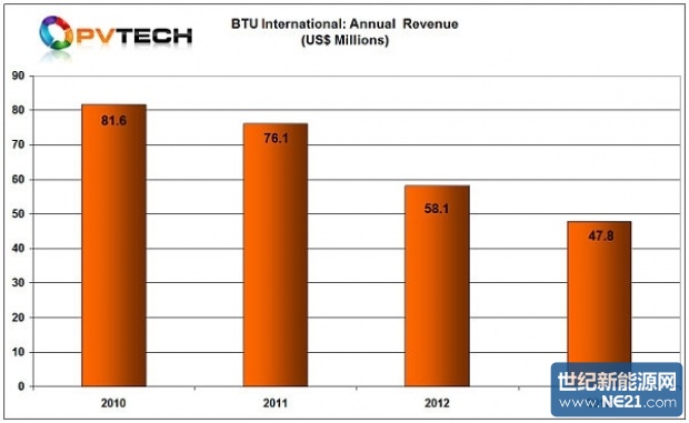 BTU International(NASDAQ:BTUI)日前报告,2013年全年收入为四千七百八十万美元,并表示其继续谨慎对待光伏制造业的下一代技术和购买周期。