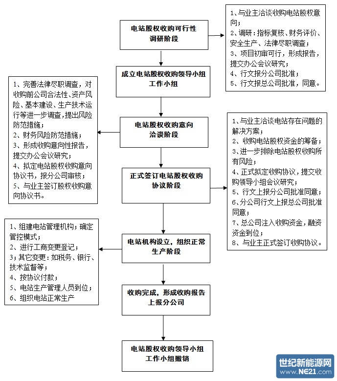 一般而言,电站收购商会通过收购项目公司的股权来完成电站的资产收购。大致流程大体如下。