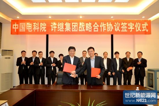 中国电科院党组书记邓永辉、许继集团总经理冷俊分别代表双方签署了《战略合作框架协议》,许继集团总会计师肖忠文主持签约仪式,中国电科院副院长王力科、许继集团副总经理姚为正出席签约仪式。