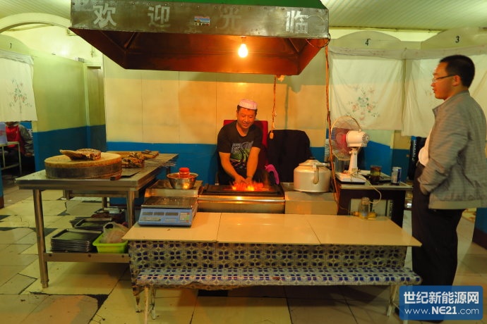 因为“老严烤肉”生意太好,我只好坐在一边烤着羊肉一边忙着调度的老板的对面,就像坐在酒吧的吧台前一样,也方便了和老板的沟通。我说“好吃”,我已经把它发布在微信群里。这样的事,老板见多了,很是淡然。我心有不甘,继续解释我是做光伏研究的,你的“炕锅羊肉”已经发布到光伏微信群里。听到“光伏”两字,老板的眼睛亮了,因为在德令哈“光伏”代表着巨大的消费人群。