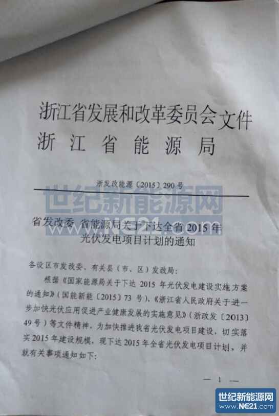 世纪新能源网报道:5月12日,浙江省发展和改革委员会、浙江省能源局下发《省发改委、省能源局关于下达全省2015年