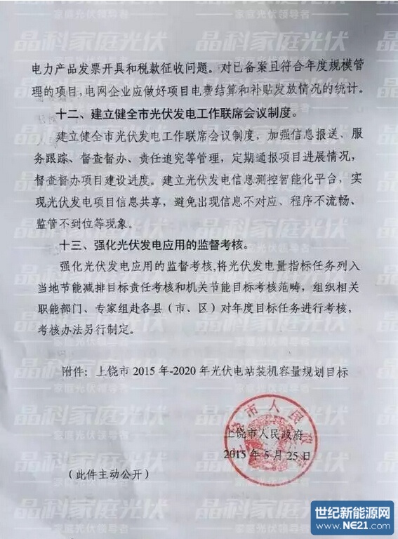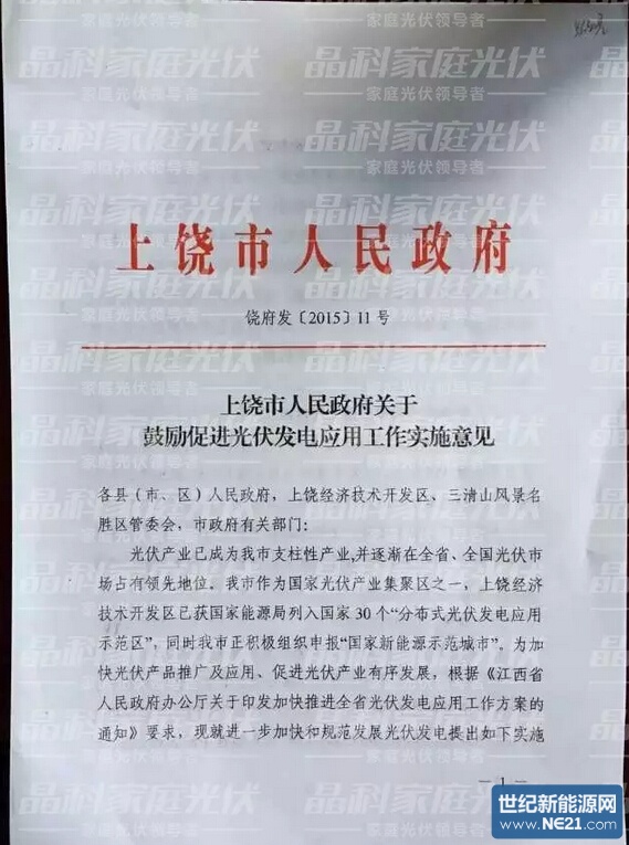 世纪新能源网据晶科能源公司透露近日,上饶市政府出台