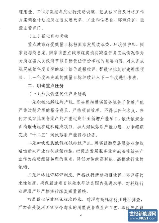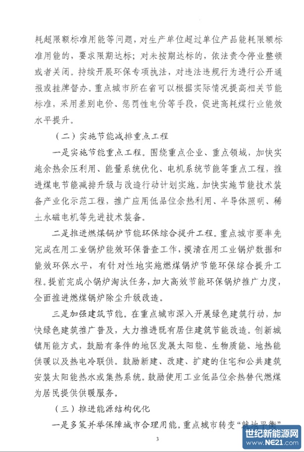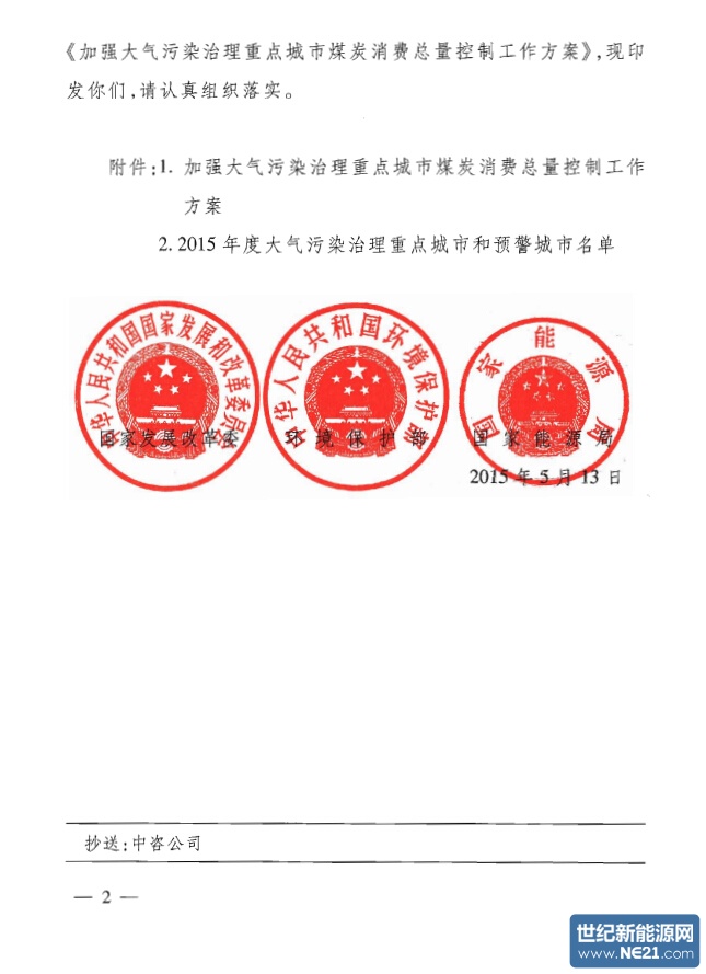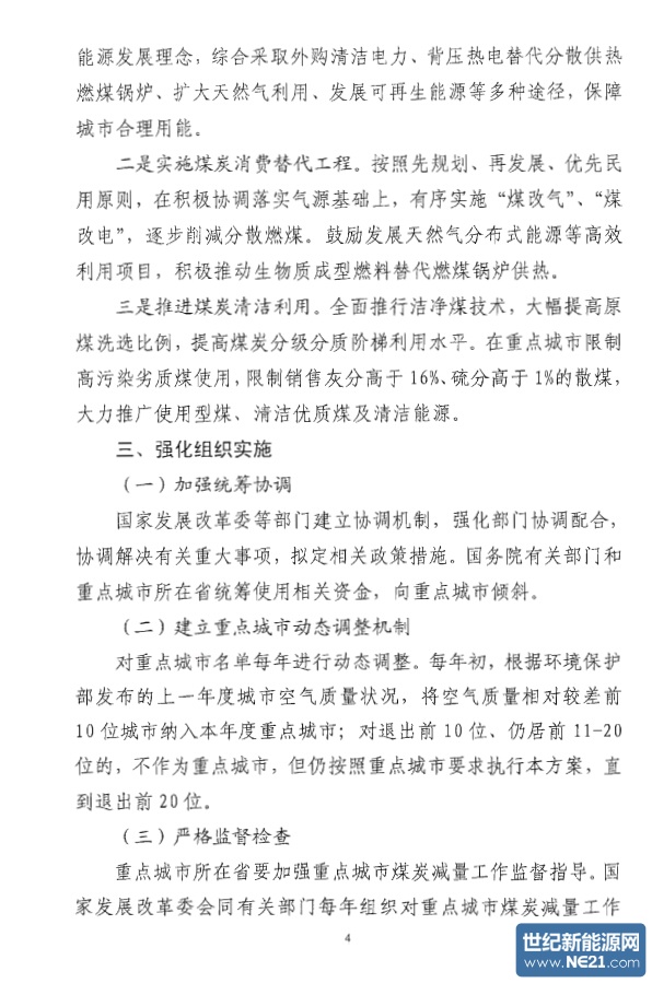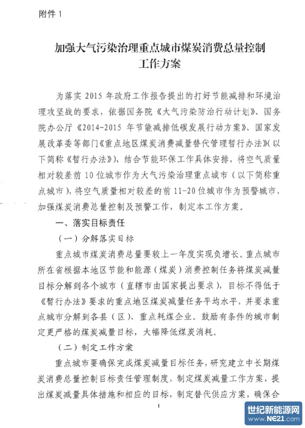 世纪新能源网报道:近日,国家发改委、环保部、国家能源局关于印发《加强大气污染治理重点城市煤炭消费总量控制工作方案》的通知。据悉,该通知意在细化煤炭消费总量控制工作,进一步促进重点城市空气质量改善。
