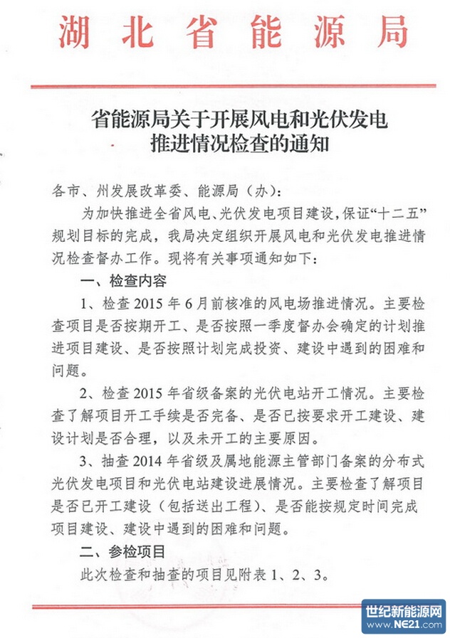 光伏方面,主要检查2015年省级备案光伏电站开工情况,了解项目开工手续是否完备、是否按要求开工建设、建设规划是否合理,以及未开工的主要原因。