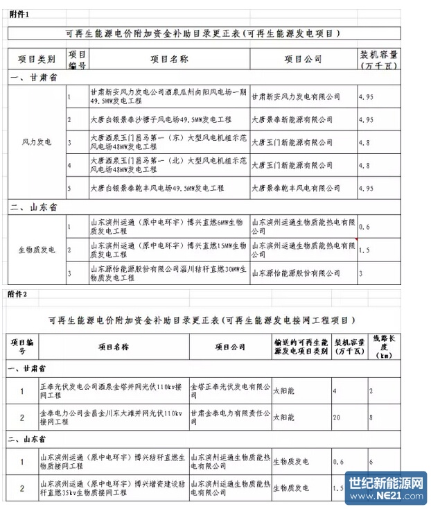 根据《财政部 国家发展改革委 国家能源局关于印发<可再生能源电价附加补助资金管理暂行办法>的通知》(财建〔2012〕102号)、《财政部 国家发展改革委 国家能源局关于公布可再生能源电价附加资金补助目录(第五批)的通知》(财建〔2014〕489号)的有关要求,同意你省上报的部分项目信息调整申请。现将调整后的项目信息公布,详见附件。