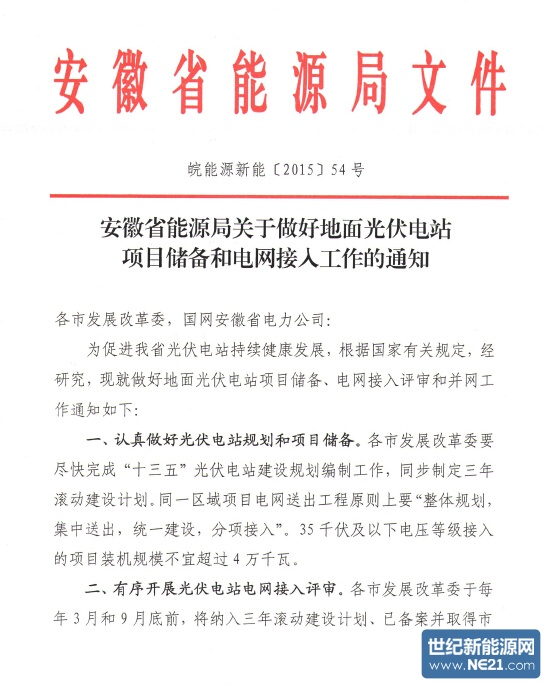 为促进我省光伏电站持续健康发展,根据国家有关规定,经研究,现就做好地面光伏电站项目储备、电网接入评审和并网工作通知如下: