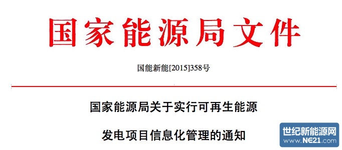 为贯彻落实《国务院办公厅关于创新投资管理方式建立协同监管机制的若干意见》(国办发〔2015〕12号)、《国务院办公厅关于运用大数据加强对市场主体服务和监管的若干意见》(国办发〔2015〕51号)、《国家能源局关于推进简政放权放管结合优化服务的实施意见》(国能法改〔2015〕199号)等文件要求,提升新能源行业管理水平,建立健全事中事后管理机制,规范可再生能源电价附加补助资金管理,现就实行可再生能源发电项目信息化管理工作的有关要求通知如下: