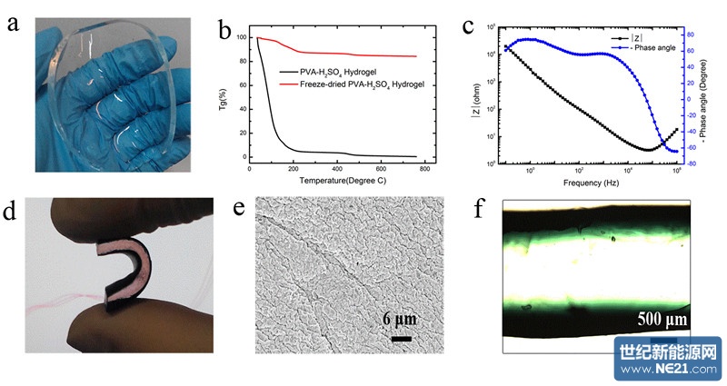 在研究组的相关前期研究工作中,研究人员探讨了凝胶态电极材料在固态柔性超级电容器中的应用。研究人员制备出基于导电聚苯胺水凝胶电极材料。与固态电极材料相比,该凝胶态电极材料由于具有更加充分的离子可到达性,因此展现出优异的电容性能和充放电倍率性能。相关研究结果发表于英国皇家化学会的《材料化学:A辑》 (J. Mater. Chem. A, 2014, 2, 19726)。