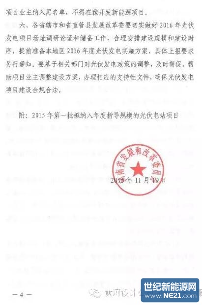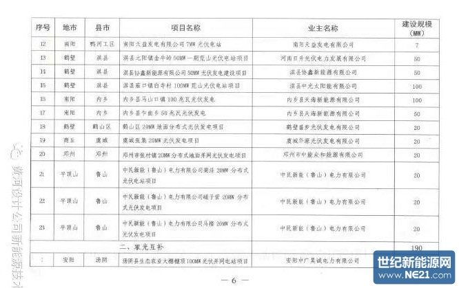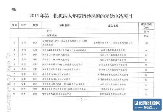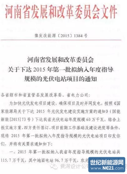 河南省2015年第一批纳入年度指导规模的光伏电站目录