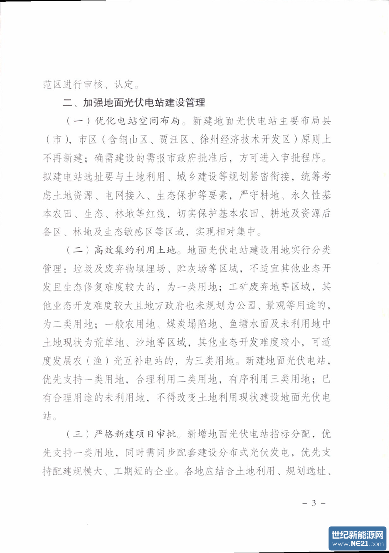 (三)严格新建项目审批。新建地面光伏电站指标分配,优先支持一类用地,同时需同步配套建设分布式光伏发电,优先支持配建规模大、工期短的企业。各地应结合土地利用、规划选址、建设必要性、技术先进度、电网接入条件、建设主体综合实力等, 对拟建项目提出初审意见,作为市级审批的必要依据。