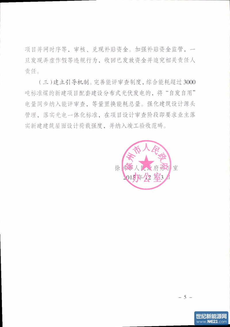 ( 三 ) 建立引导机制。宪善能评审査制度,综合能耗超过3000吨标准煤的新建项目配套建设分布式光伏发电的,将“自发自用” 电量同步纳入能评审查,等量置换能耗总量。强化建筑设计源头管理,落实光电一体化标准,在项目设计审査阶段即要求业主落实新建建筑屋面设计荷载强度,并纳入竣工验收范畴。