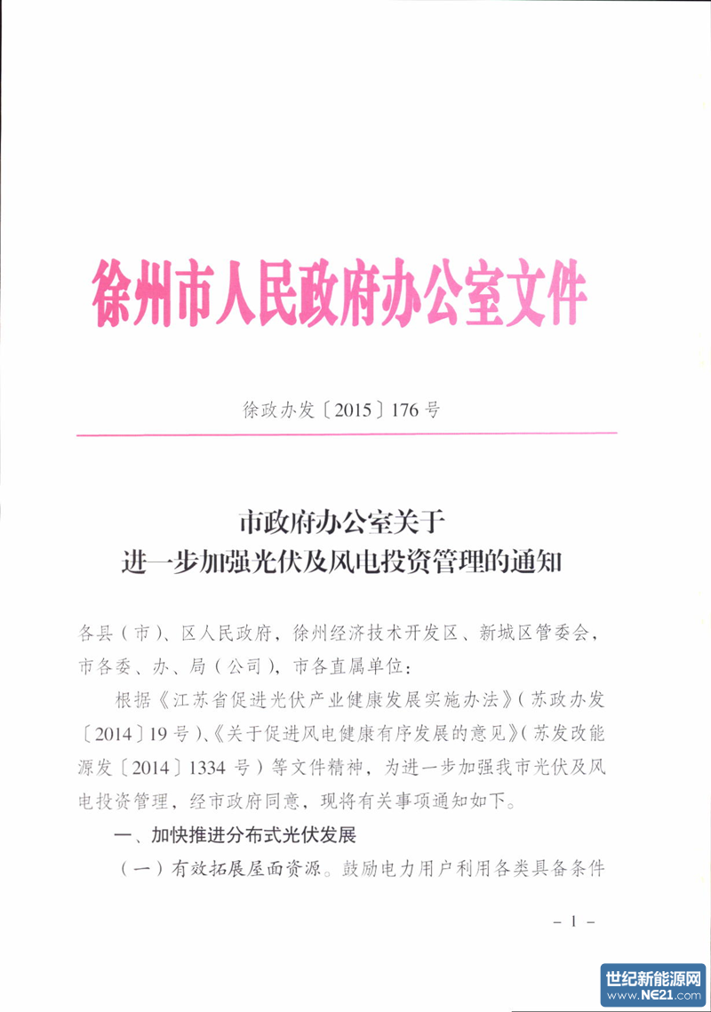 根据《江苏省促进光伏产业健康发展实施办法》(苏政办发 〔2014〕19号) 、《关于促进风电健康有序发展的意见》(苏发改源发〔2014〕1334号)等文件精神,为进一步加强我市光伏及风电投资管理,经市政府同意,现将有关事项通知如下。