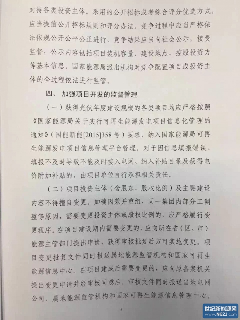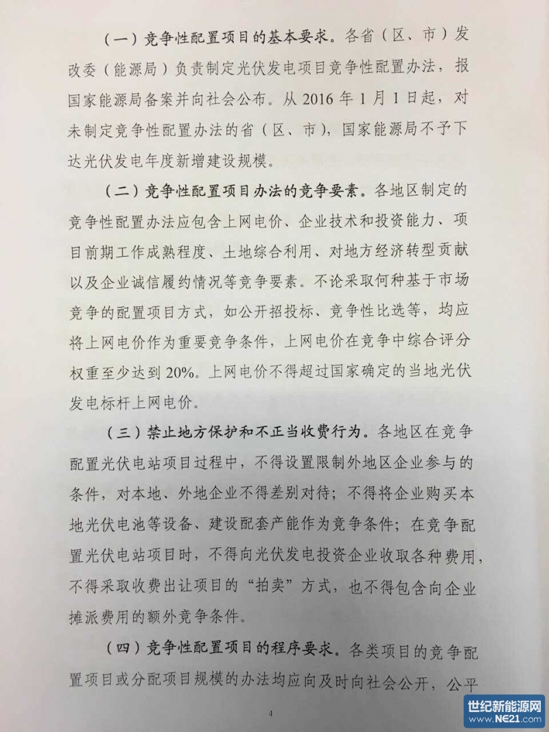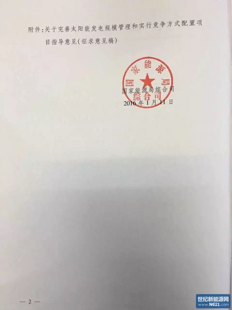 独家:国家能源局2016年14号文件《征求完善太阳能发电管理竞争配置指导意见》函