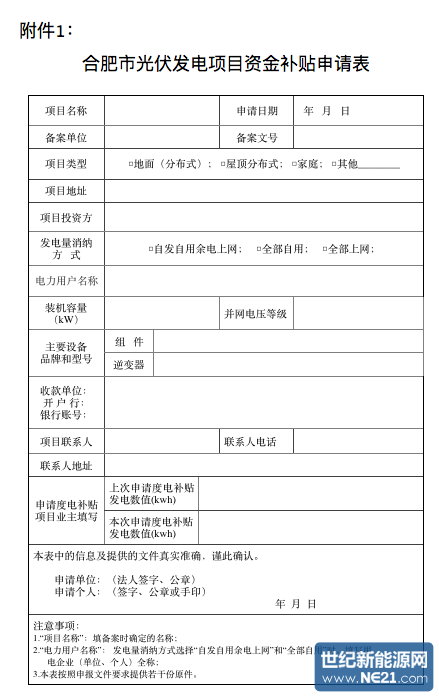 1.合肥市光伏发电项目资金补贴申请表