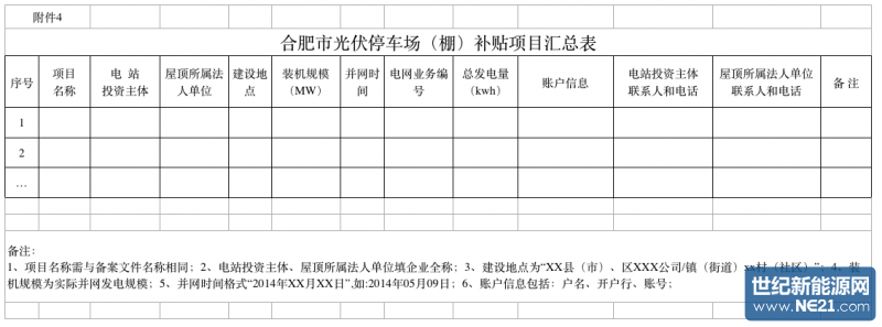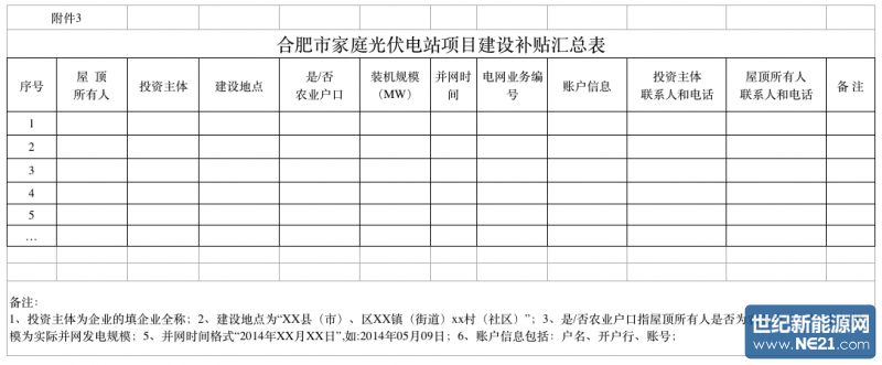 (5)《合肥市家庭光伏电站项目建设补贴汇总表》(附件3)。