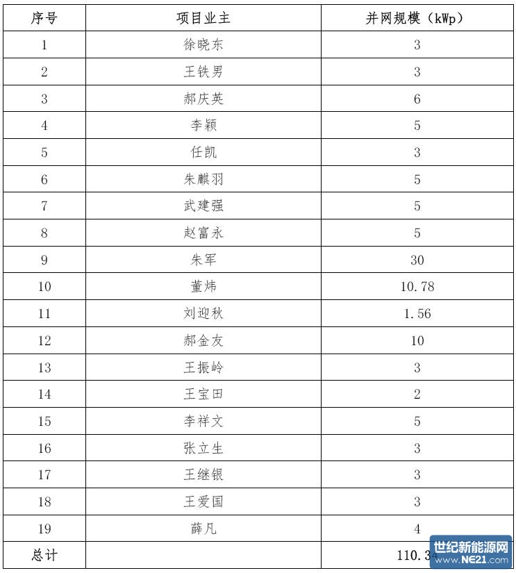世纪新能源网记者看到,第一批企业用户为7户装机量4319.4KW,个人为19户装机量110.34KW。他们除获得国家补贴0.42元外,还将获得0.3元/千瓦时的奖励。
