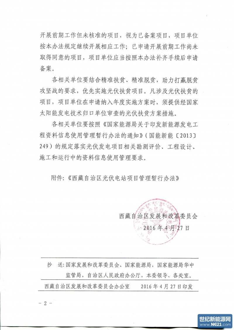 电站项目管理暂行办法》的通知。通知称,自办法发布之日起,西藏取消光伏电站项目前期工作的请示。