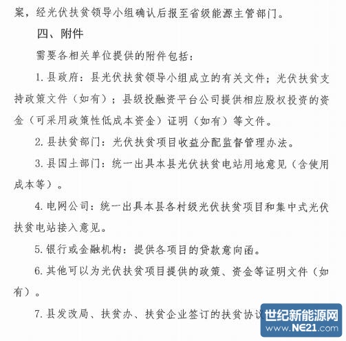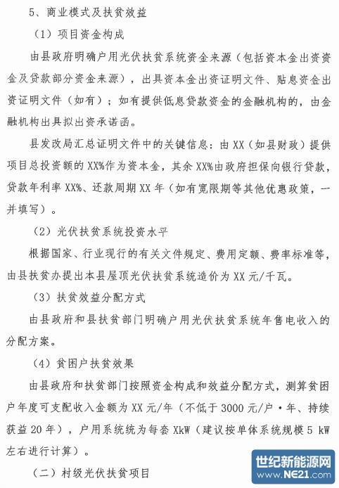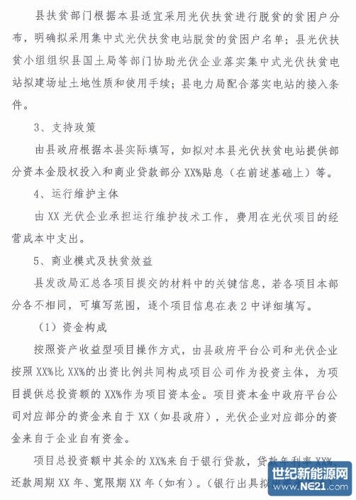此外,鼓励企业在有条件的农村和农户建设100千瓦以内的村级电站和5-10千瓦/户的屋顶分布式发电项目。省、市、县有关部门协助落实扶贫资金投资项目建设。