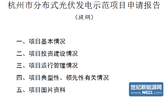 为有效实施分布式光伏推广应用专项行动,以高效能示范项目带动全市光伏推广应用,促进我市光伏产业创新发展,市经信委、市发改委决定公开征集发布一批杭州市分布式光伏发电示范项目。现将有关工作要求通知如下: