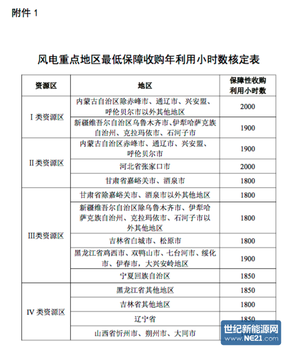 附件:1.风电重点地区最低保障收购年利用小时数核定表