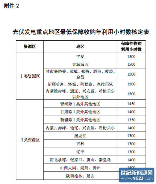 2.光伏发电重点地区最低保障收购年利用小时数核定表