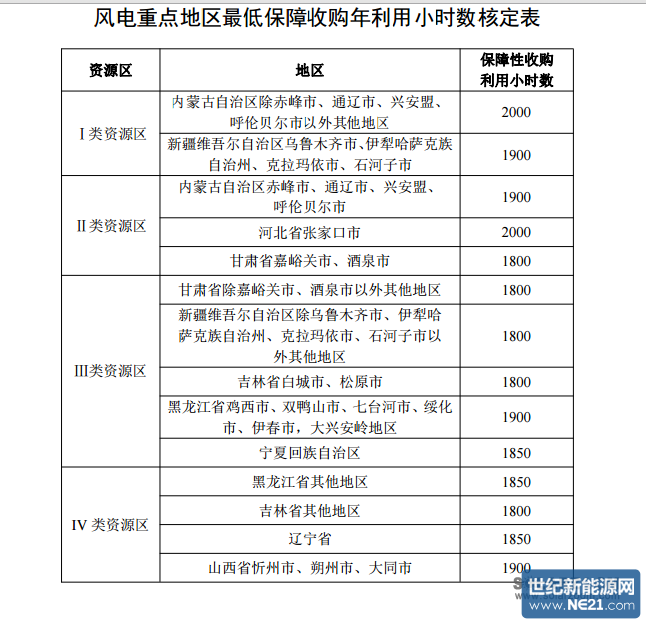 附件:1.风电重点地区最低保障收购年利用小时数核定表