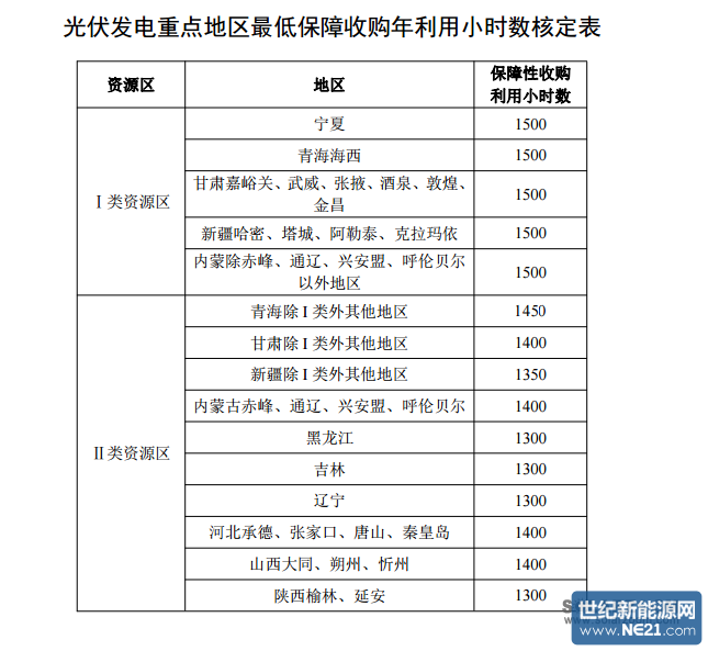2.光伏发电重点地区最低保障收购年利用小时数核定表