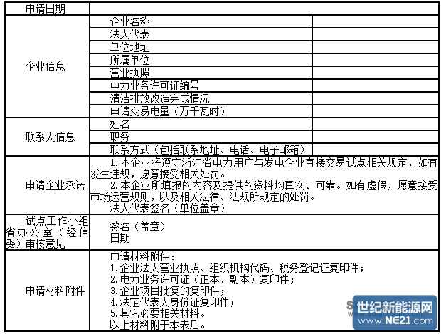 注:1.本申请表一式4份,省经信委、浙江能源监管办、省电力公司各1份,企业留存1份。