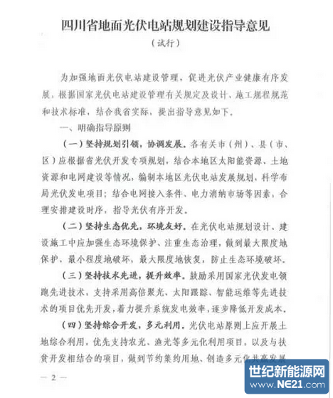 原标题:四川省能源局关于印发《四川省地面光伏电站规划建设指导意见(试行)》的通知