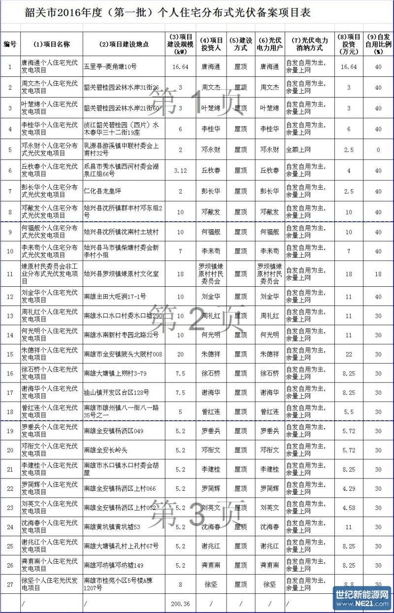 一、为进一步推进我市分布式光伏发电应用,同意你局报来的韶关市2016年度(第一批)个人住宅分布式光伏发电项目备案。本次备案个人住宅分布式光伏发电项目27项,合计装机容量200.36千瓦(详见附件),纳入我市2016年度分布式光伏发电新增建设规模。