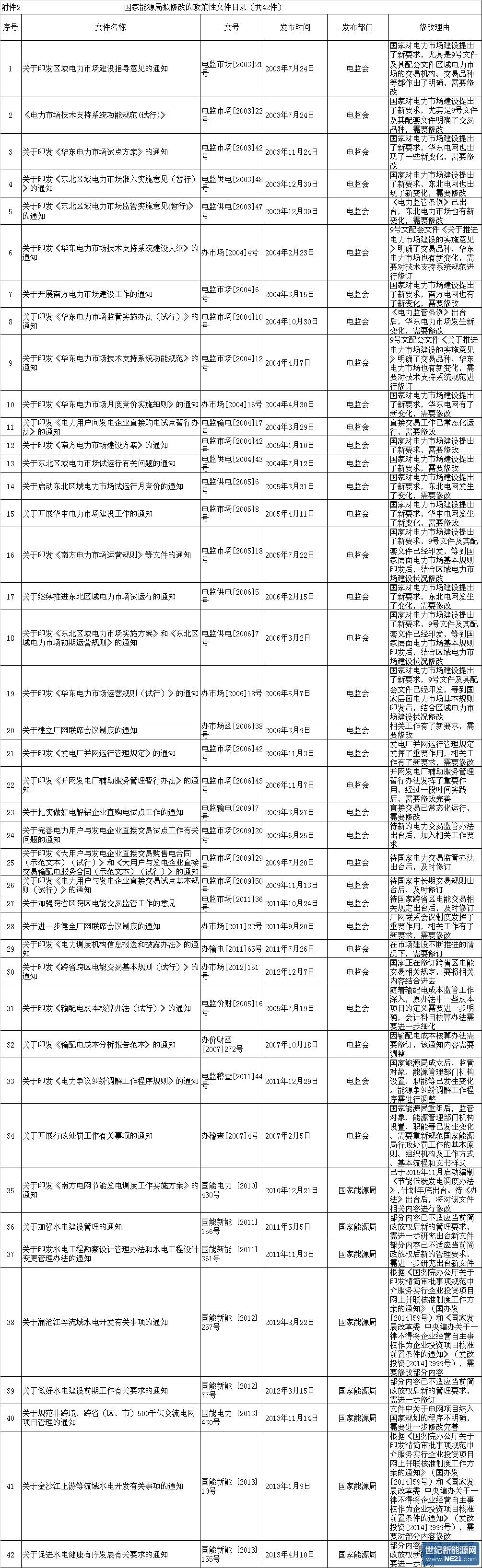 附件2 国家能源局拟修改的政策性文件目录