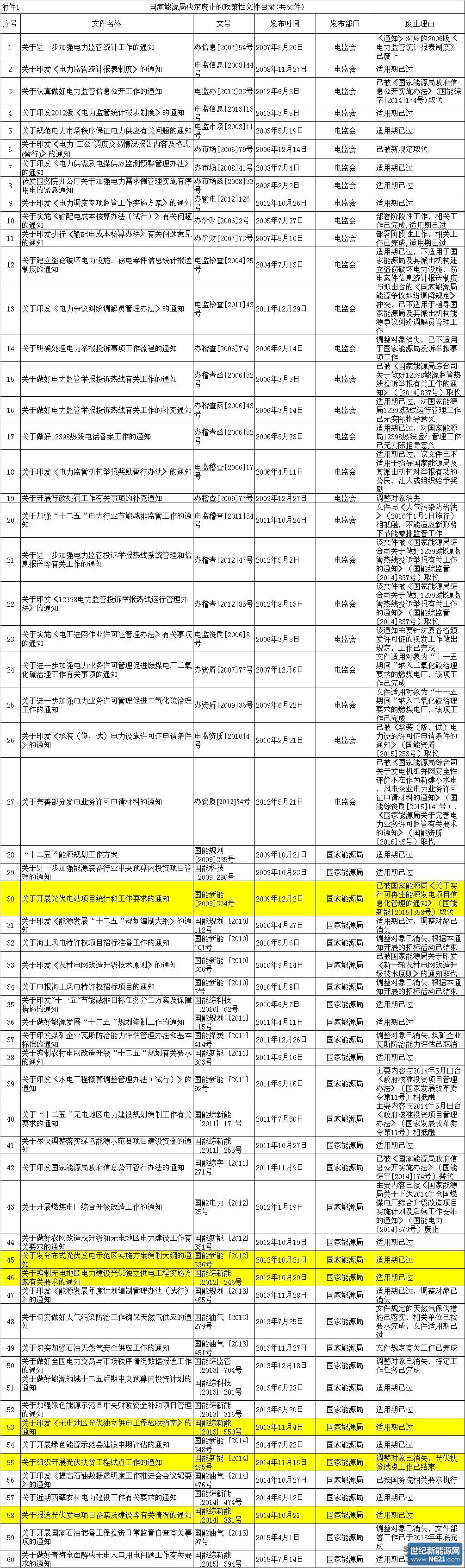 附件1 国家能源局决定废止的政策性文件目录