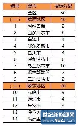 根据该文件,蒙西地区共获40万千瓦,蒙东地区是20万千瓦的普通电站指标。各盟市的电站规模指标将由各盟市发改委制定竞争性配置办法进行分配。
