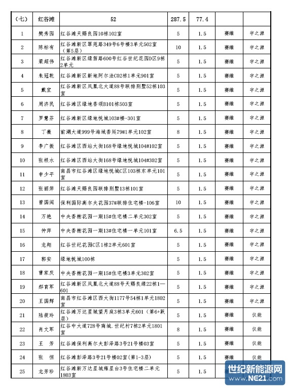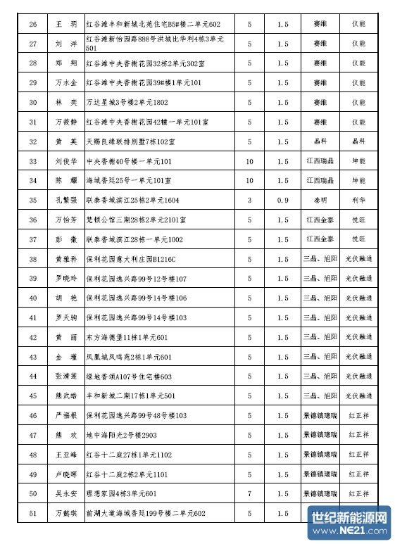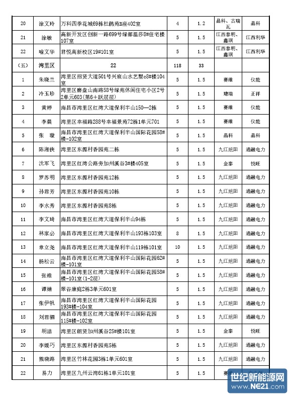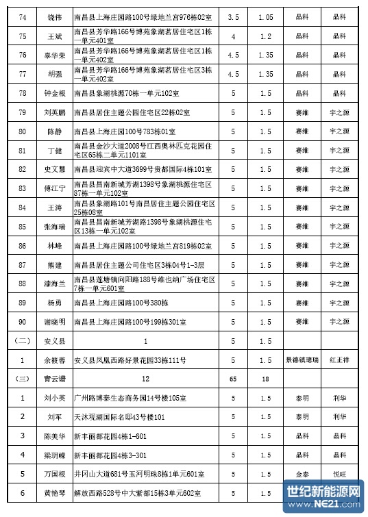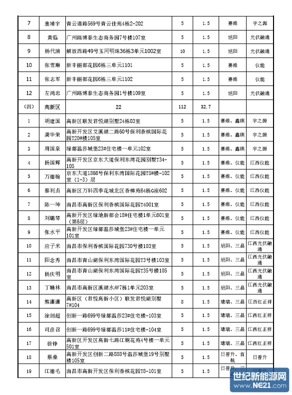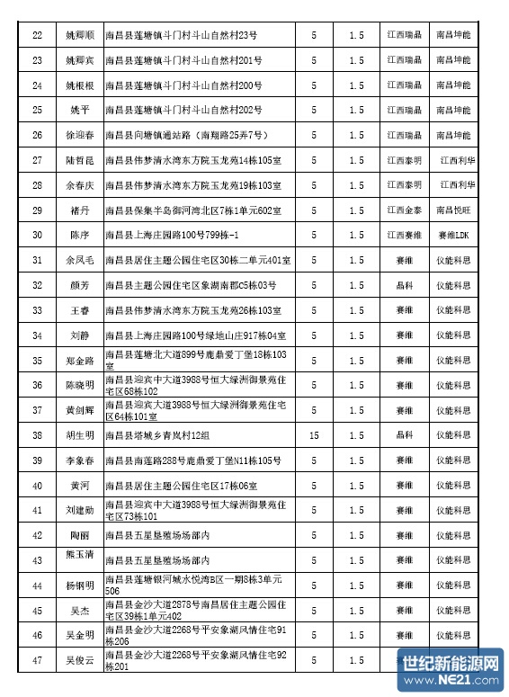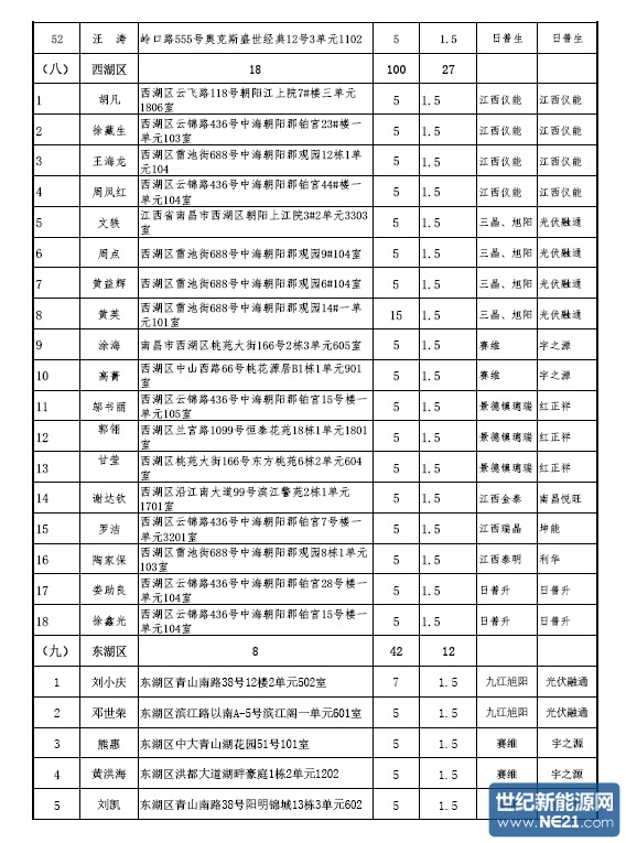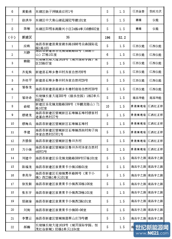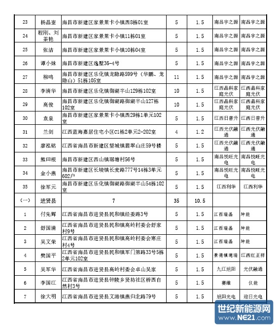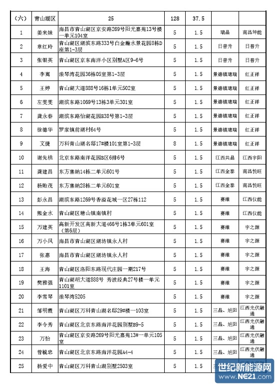 南昌市千家屋顶光伏示范工程2016年第一批补贴项目明细