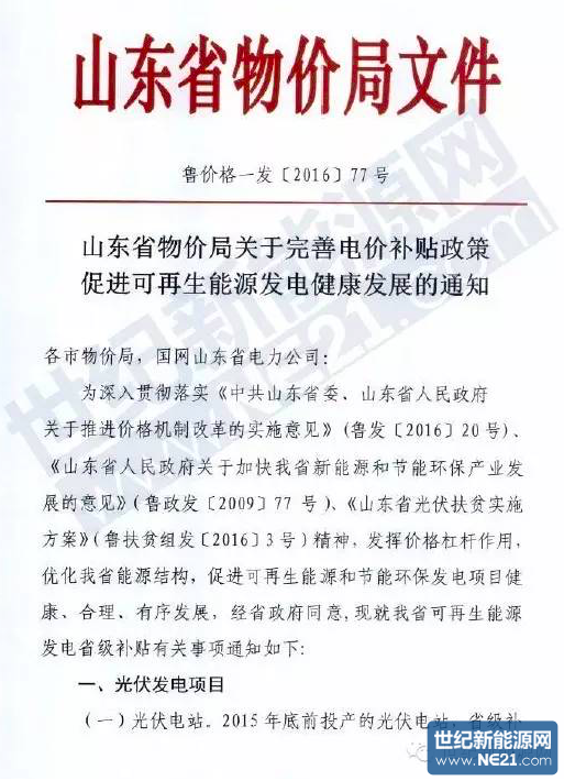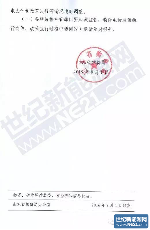 文件通知指出,该政策自2016年1月1日起执行,根据山东省电力体制改革进程情况适时调整。