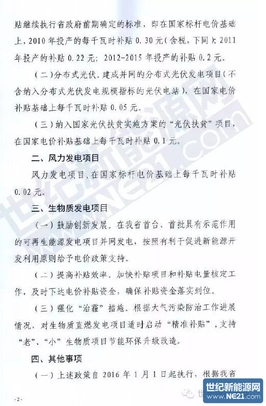 2012至2015年投产的光伏项目省补0.2元/Kwh;
