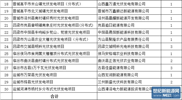 山西省2016年光伏发电建设实施方案明细表
