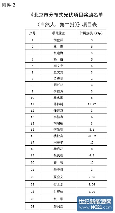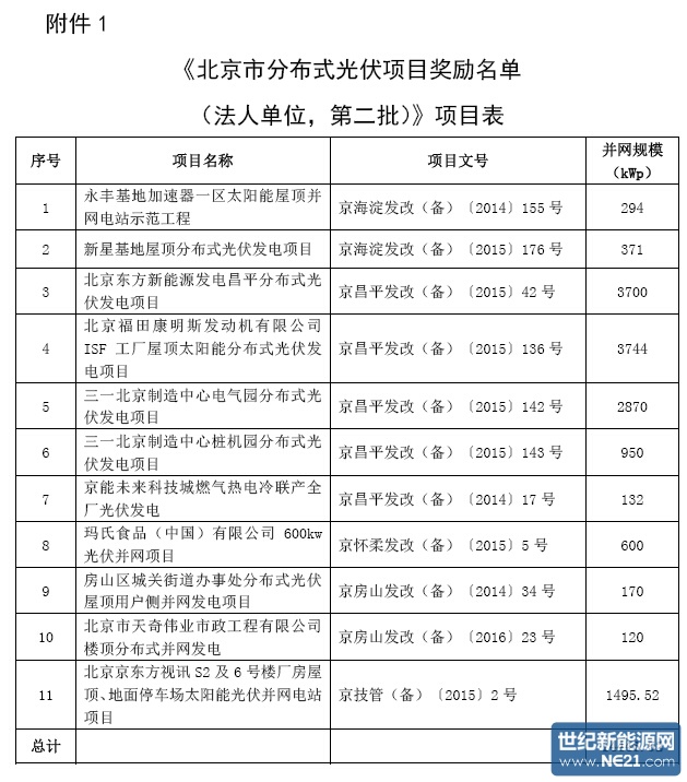 又发补贴啦!!!2016年9月7日,北京市发展和改革委员会下达《关于公示北京市分布式光伏发电奖励名单(第二批)的通知》。通知称,进入第二批分布式补贴的项目一共221个,装机容量16205.395KW。其中,法人单位为11个项目14446.52KW。个人为210个项目1758.875KW。