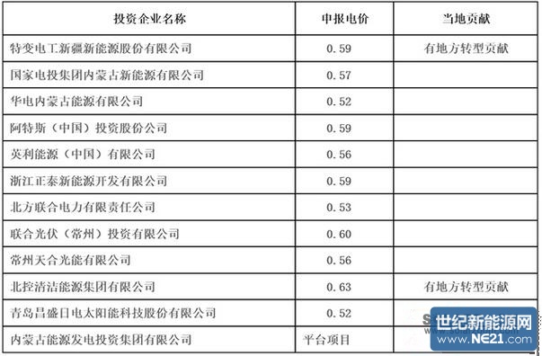内蒙古包头市采煤沉陷区国家先进技术光伏发电示范基地2016年项目投资商公示