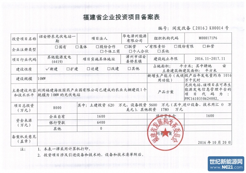 2016年该省14个项目共计200MW已全部报备。记者主要的到行业内较为知名的企业如华电、昌盛、中电光伏、南玻、国电投等参与该省200MW项目建设。此外,2016年14个项目全部为农光、渔光项目。