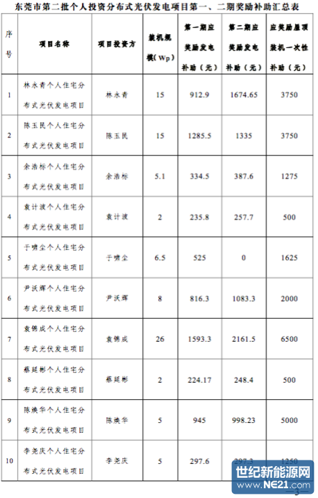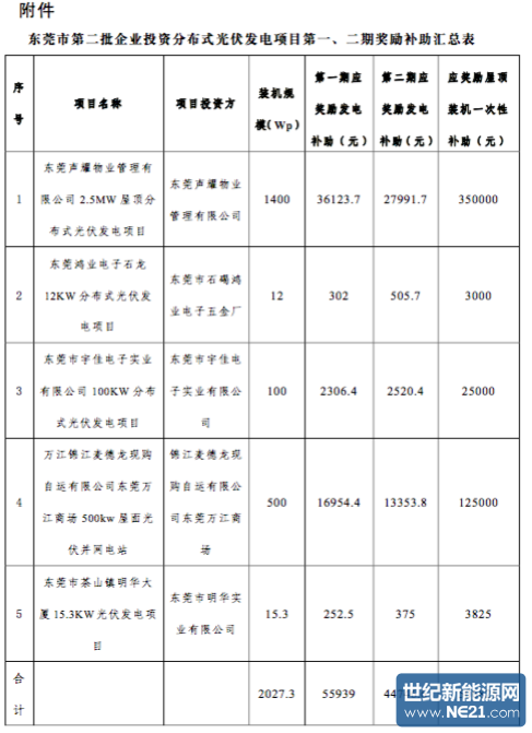附件:东莞市第二批(第一、二期)专项补贴分布式光伏发电项目汇总表.pdf