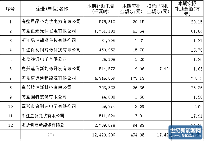 为促进我县光伏产业健康发展,根据《海盐县人民政府 关于印发〈2016年海盐县推进光伏发电应用实施方案〉的通知》(盐政发〔2016〕22号)精神,依照县财政局《海盐县企业财政性扶持资金管理办法》(盐财企〔2016〕1号)规定,经审核本次共有12家企业符合补助标准,报经县政府批准,现拨付第二批光伏发电项目投资方财政补助资金417.55万元,资金列专用基金“工业发展资金”支出。