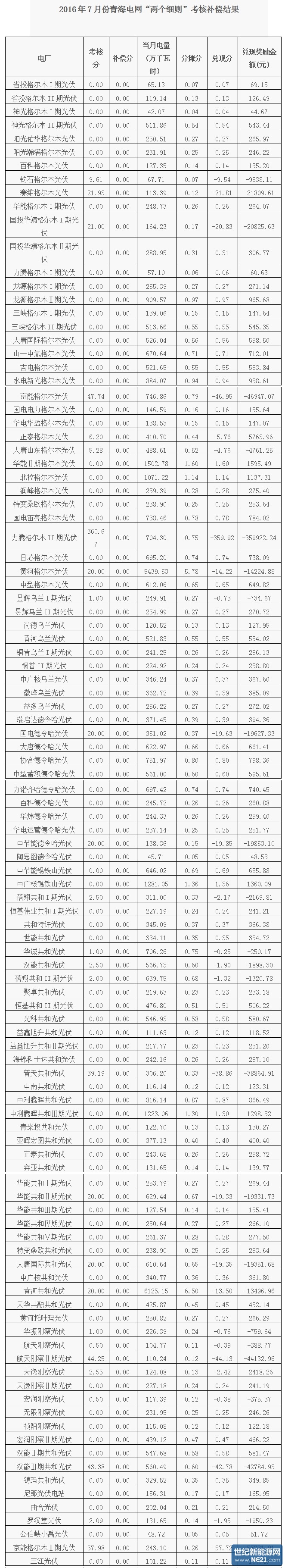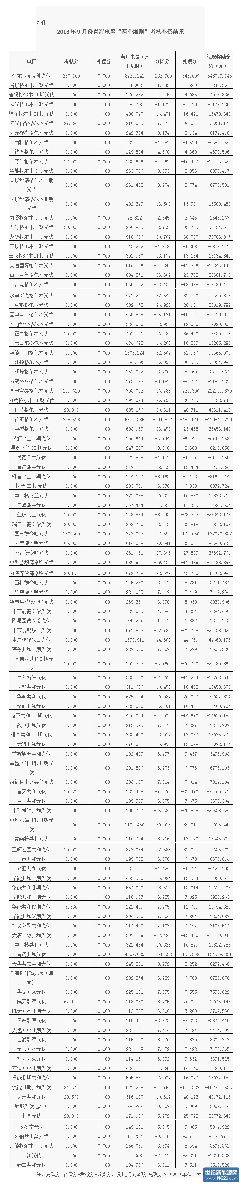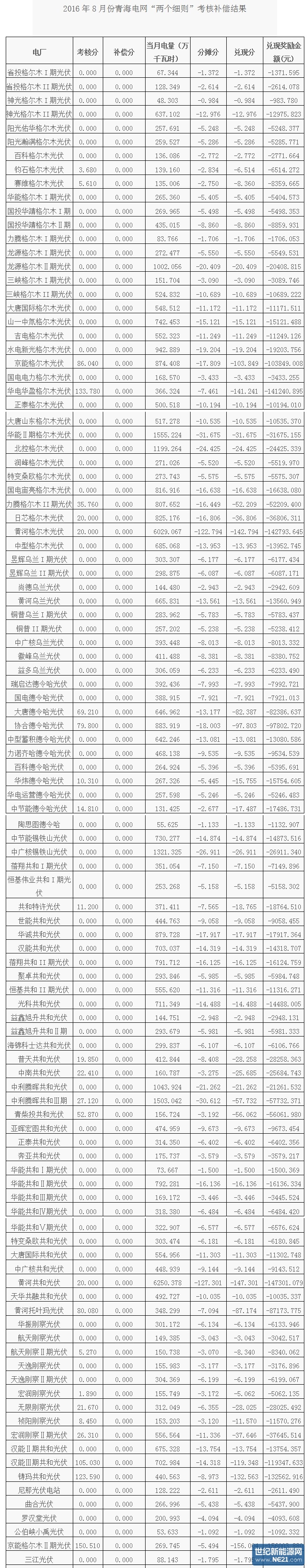 根据《关于印发<西北区域发电厂并网运行管理实施细则>及<西北区域并网发电厂辅助服务管理实施细则>的通知》(西北监能市场〔2015〕28号)规定,国家能源局西北监管局下发2016年3季度青海电网“两个细则”考核补偿情况,本文截取