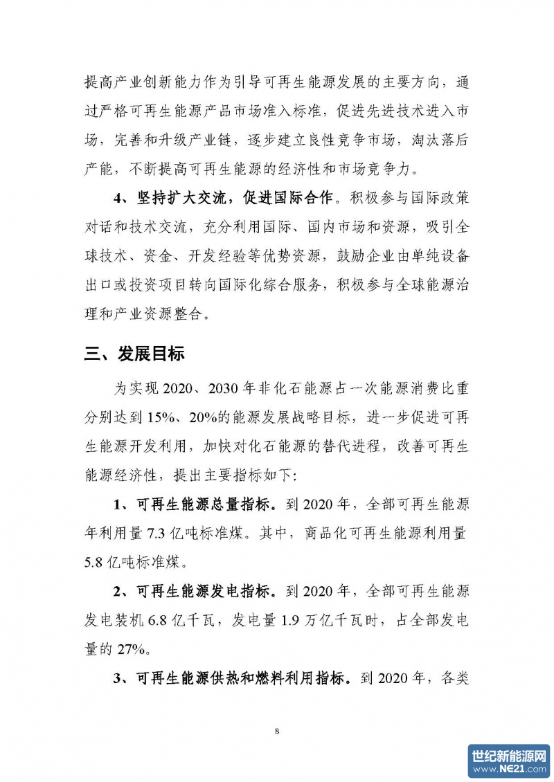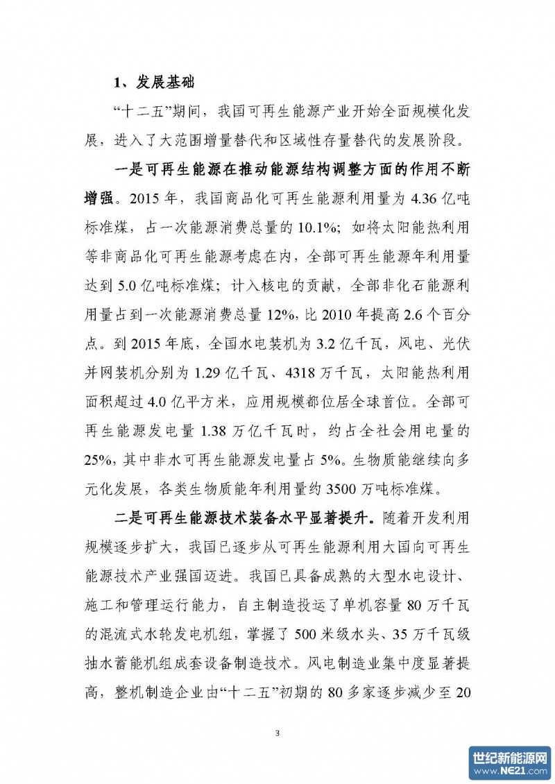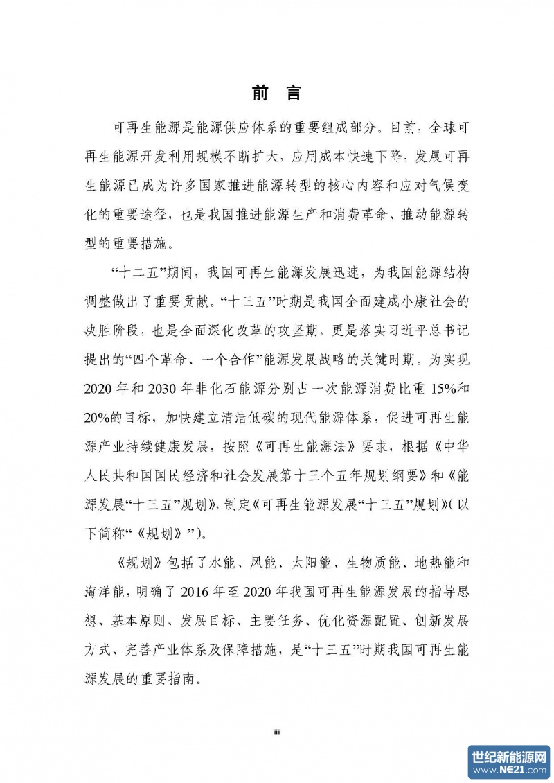 为实现2020年非化石能源占一次能源消费比重15%的目标,加快建立清洁低碳、安全高效的现代能源体系,促进可再生能源产业持续健康发展,按照《可再生能源法》要求,根据《中华人民共和国国民经济和社会发展第十三个五年规划纲要》和《能源发展“十三五”规划》,我们制定了《可再生能源发展“十三五”规划》,现印发你们,请按照执行。