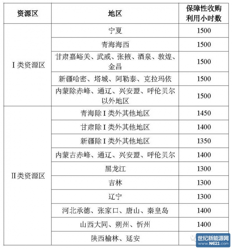 表3:光伏发电重点地区最低保障收购年利用小时数核定表