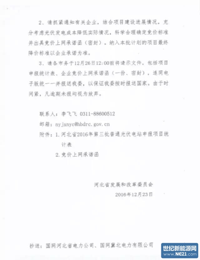 12月23日,河北省发改委下发《关于申报2016年第三批普通