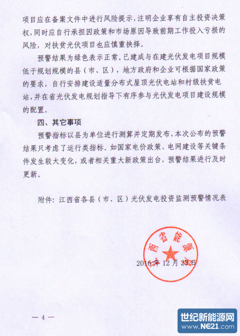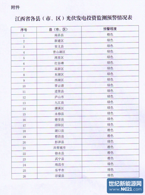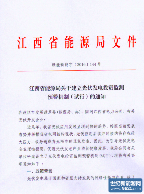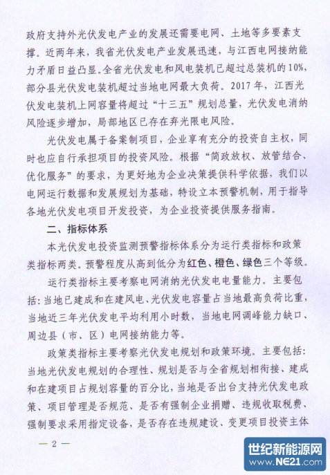 江西省能源局关于建立光伏发电投资监测预警机制(试行)的通知
