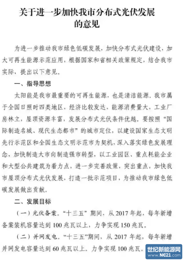 一、要求2017年东莞每个镇街(园区)要备案不少于1个1MW的分布式示范项目;